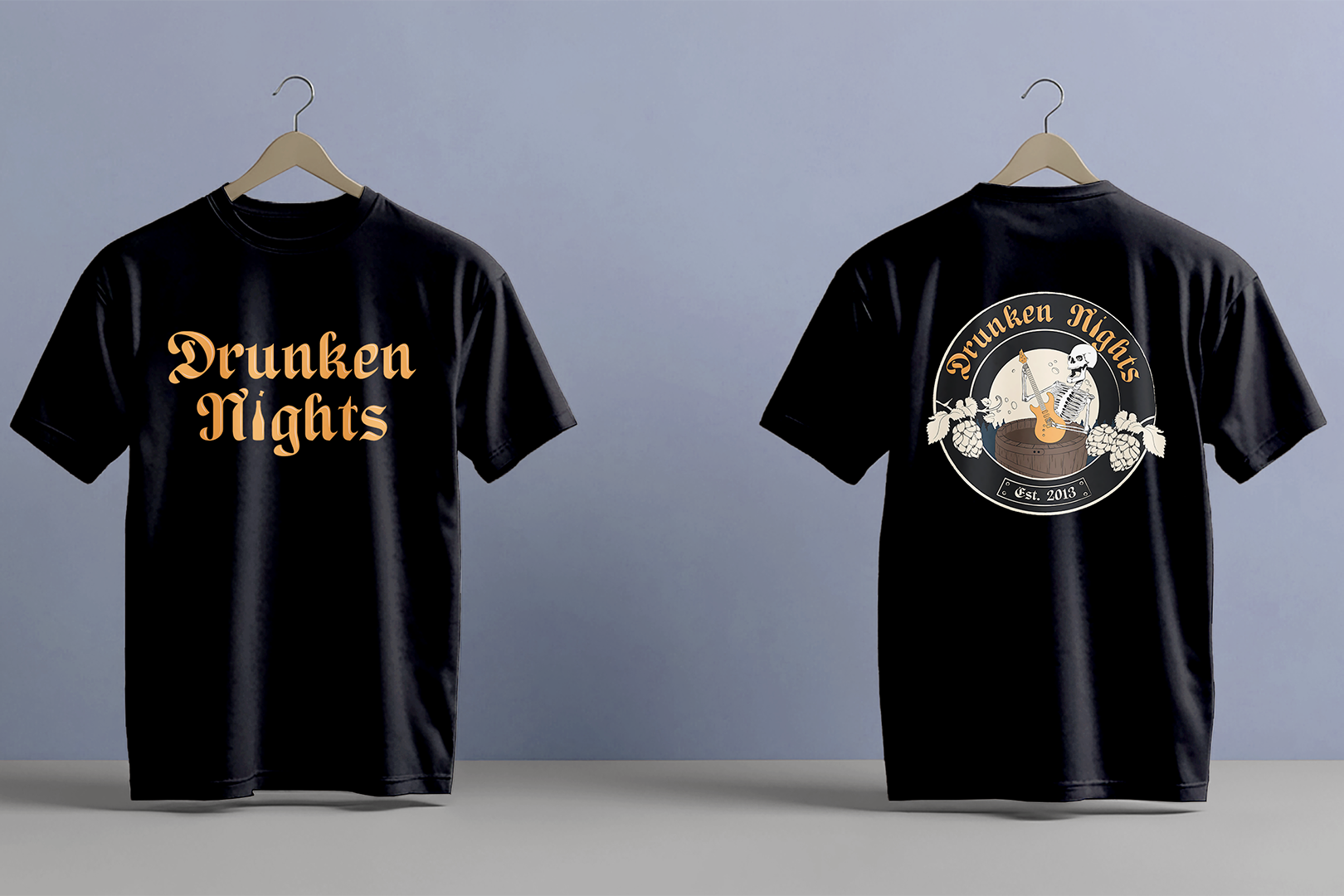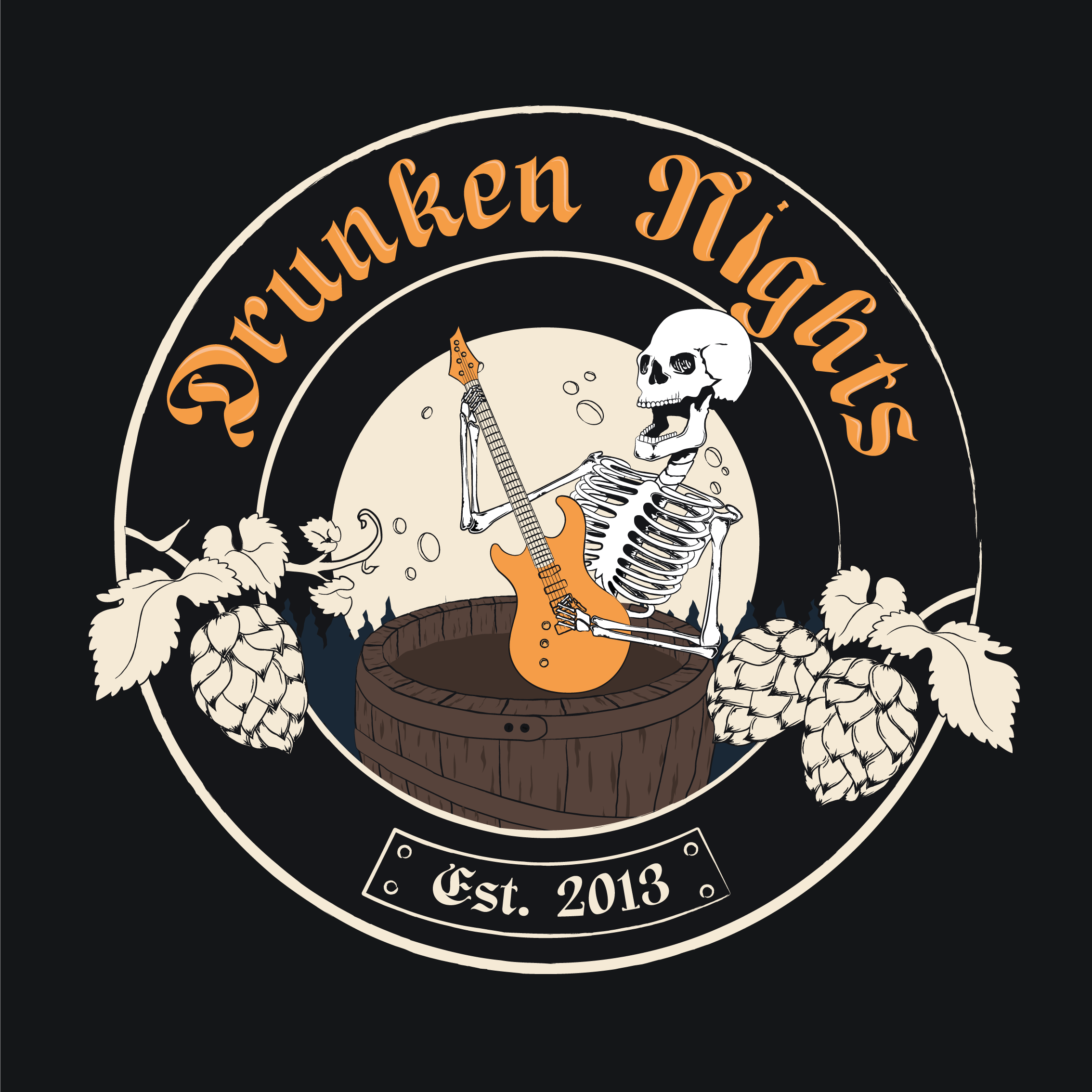 Für die Drunken Nights – eine etablierte, jährlich stattfindende Metal-Konzertreihe (seit 2013) – durfte ich das komplett von mir selbst illustrierte Logo entwickeln, das die Vision des Veranstalters präzise umsetzt.