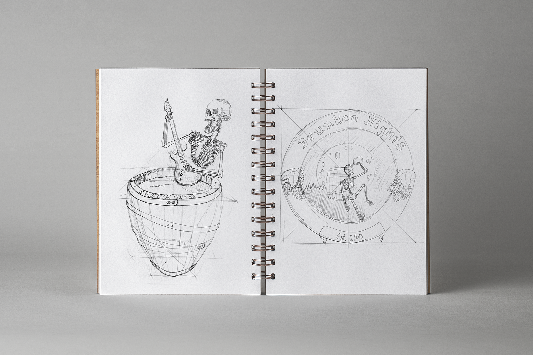 Gerade bei komplexeren Projekten, wie dem "Drunken Nights" Logo, war dieser Ansatz sehr wertvoll. Die händischen Entwürfe halfen mir, Ideen schnell und ohne großen Aufwand zu kommunizieren und das Motiv frühzeitig anzupassen, bevor in die aufwendige Vektorisierung investiert wird.